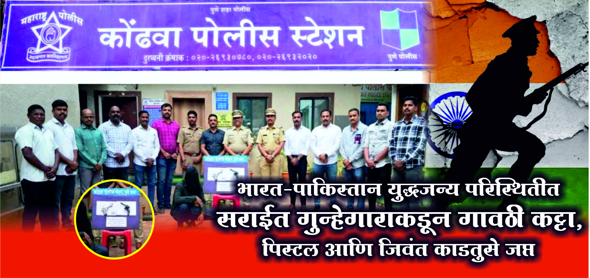 Pune Police | कोंढवा पोलीस तपास पथकाची धडाकेबाज कारवाई: भारत-पाकिस्तान युद्धजन्य परिस्थितीत सराईत गुन्हेगाराकडून गावठी कट्टा, पिस्टल आणि जिवंत काडतुसे जप्त